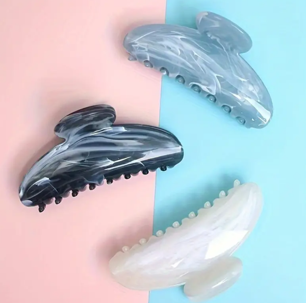 Marmeren wolkenpatroon haarklem, kunststof, eenvoudig, stijl, ovaal vorm, meerkleurig print.